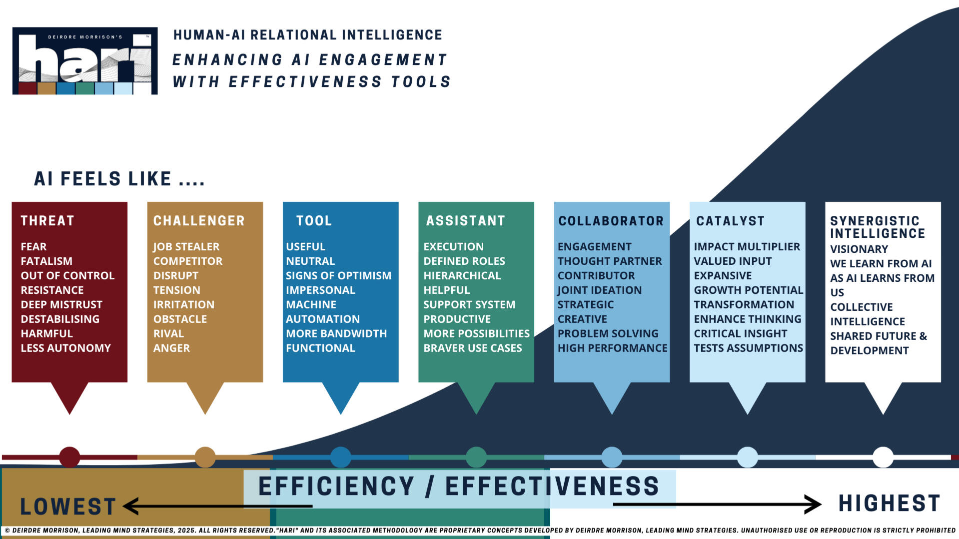 © Deirdre Morrison, Leading Mind Strategies 2025. All rights reserved.The HARI™ Model and all associated content, including but not limited to text, graphics, frameworks, and methodologies, are the intellectual property of Deirdre Morrison, Leading Mind Strategies. Unauthorised reproduction, distribution, or adaptation of this content in any form is strictly prohibited without express written permission.HARI™ and Human-AI Relational Intelligence™ are trademarks of Deirdre Morrison, Leading Mind Strategies. Their use in commercial training, coaching, consulting, or educational materials without prior authorisation is not permitted.For licensing, inquiries, or permissions, please contact [email protected]